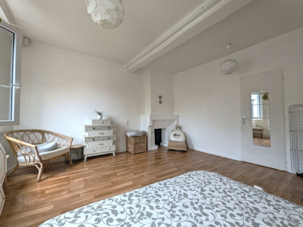A l’étage, vous trouverez une chambre côté cour avec rangements, une seconde grande chambre lumineuse côté rue, ainsi qu’une salle de bains (douche et baignoire) et un 2ème wc.