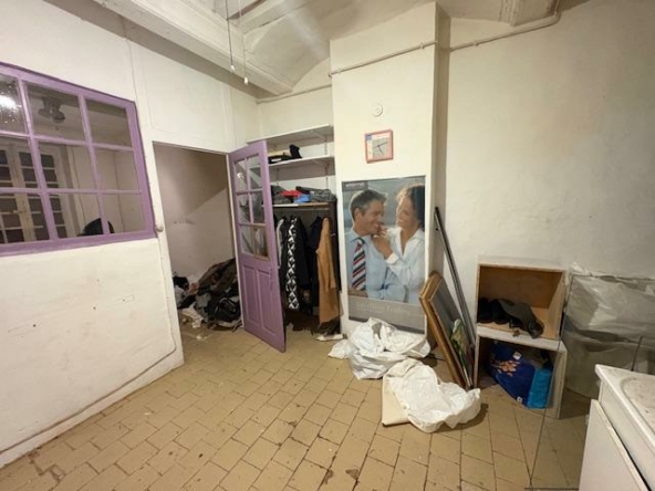 Ce local se compose d’une grande pièce principale au rez-de-chaussée, d’un espace de même surface à l’étage, d’une toilette située à l’entresol ainsi que d’un grenier au-dessus.