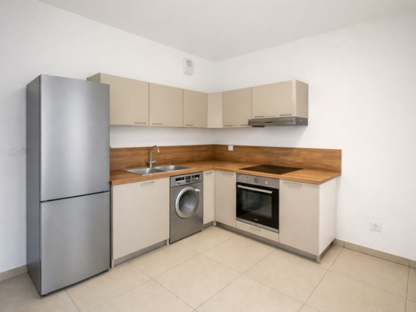 Au sein de la Résidence DOMAINE CAMILLE, ce spacieux studio se compose d’une cuisine meublée (hotte et plaques de cuisson), une grande pièce principale ouvrant sur une terrasse de 10.41m² avec un accès direct au jardin de 44.25m², ainsi qu’une salle de bains et des wc séparés.