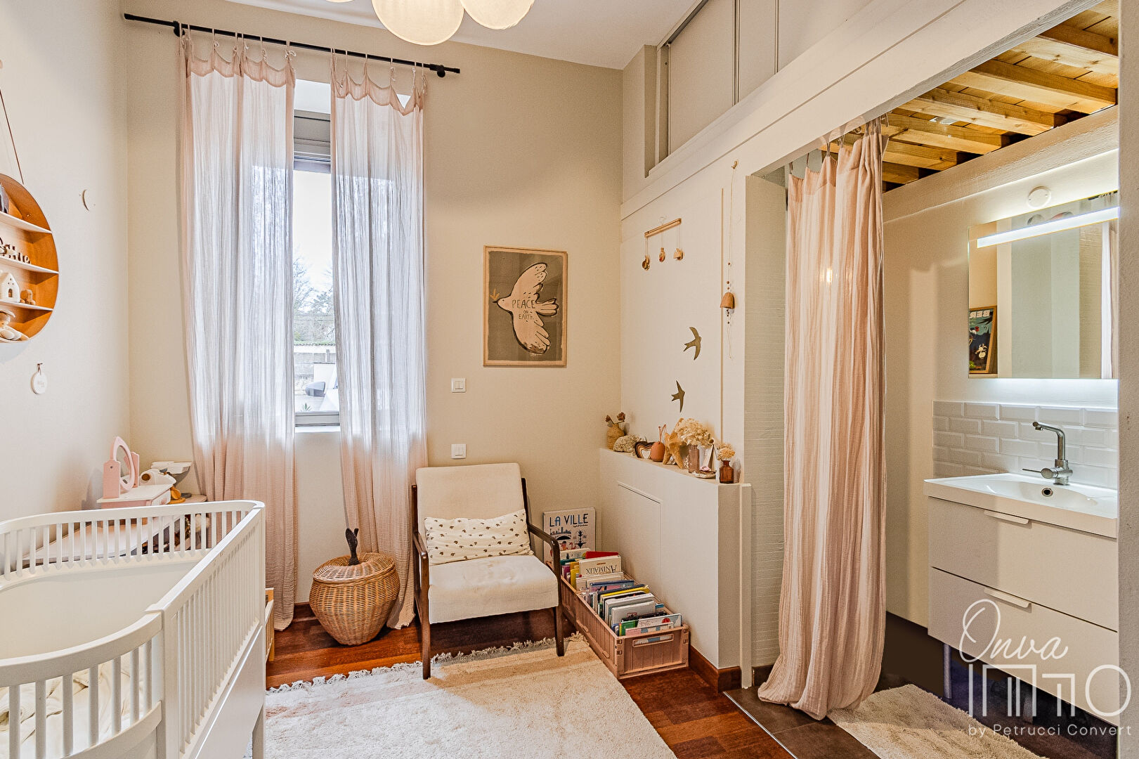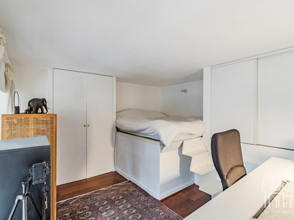 – d’une mezzanine de 12m² accessible depuis le salon pouvant faire office d’atelier, de bureau ou de chambre.
