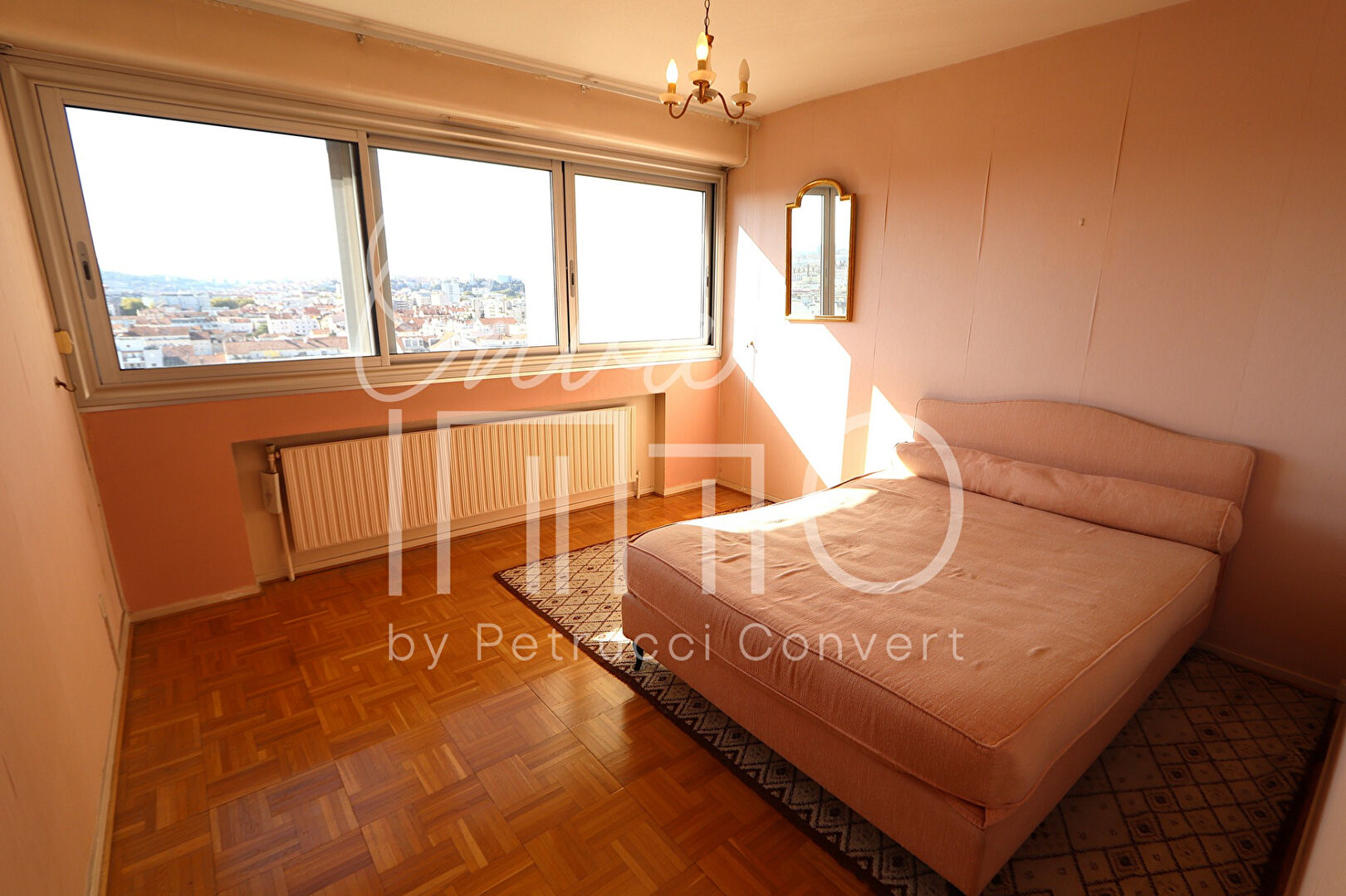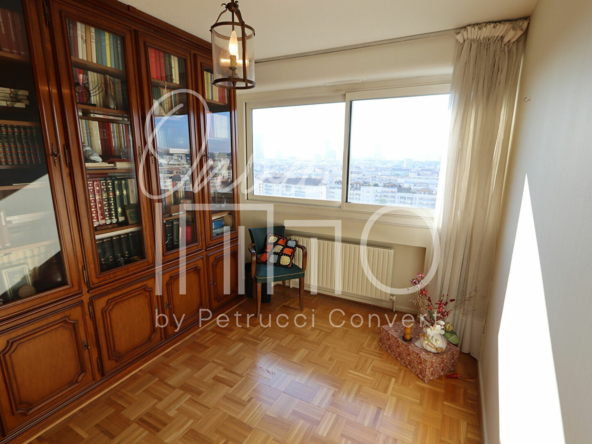 Lumineux appartement traversant E / O en étage élevé avec ascenseur, doté d’un linéaire de fenêtres inondant l’espace de lumière et offrant une très belle vue sur les Monts du Lyonnais et Fourvière, dans une copropriété arborée et sécurisée.