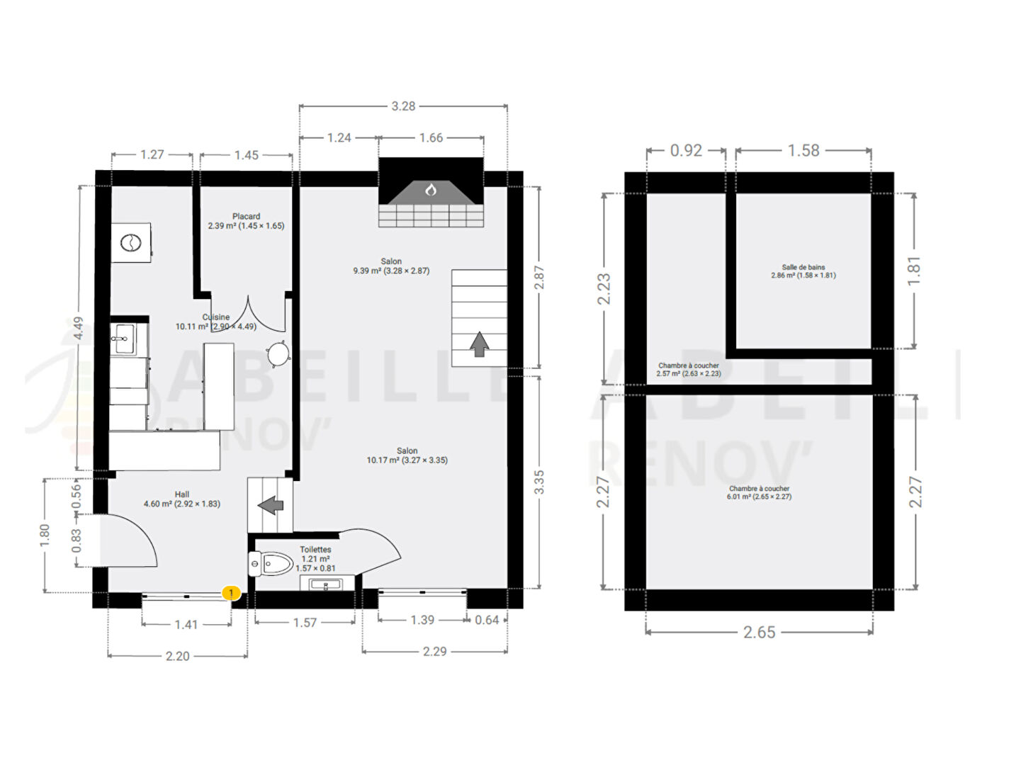 Pour une meilleure visualisation des volumes vous trouverez dans les photos de l’annonce un plan côté de l’appartement.