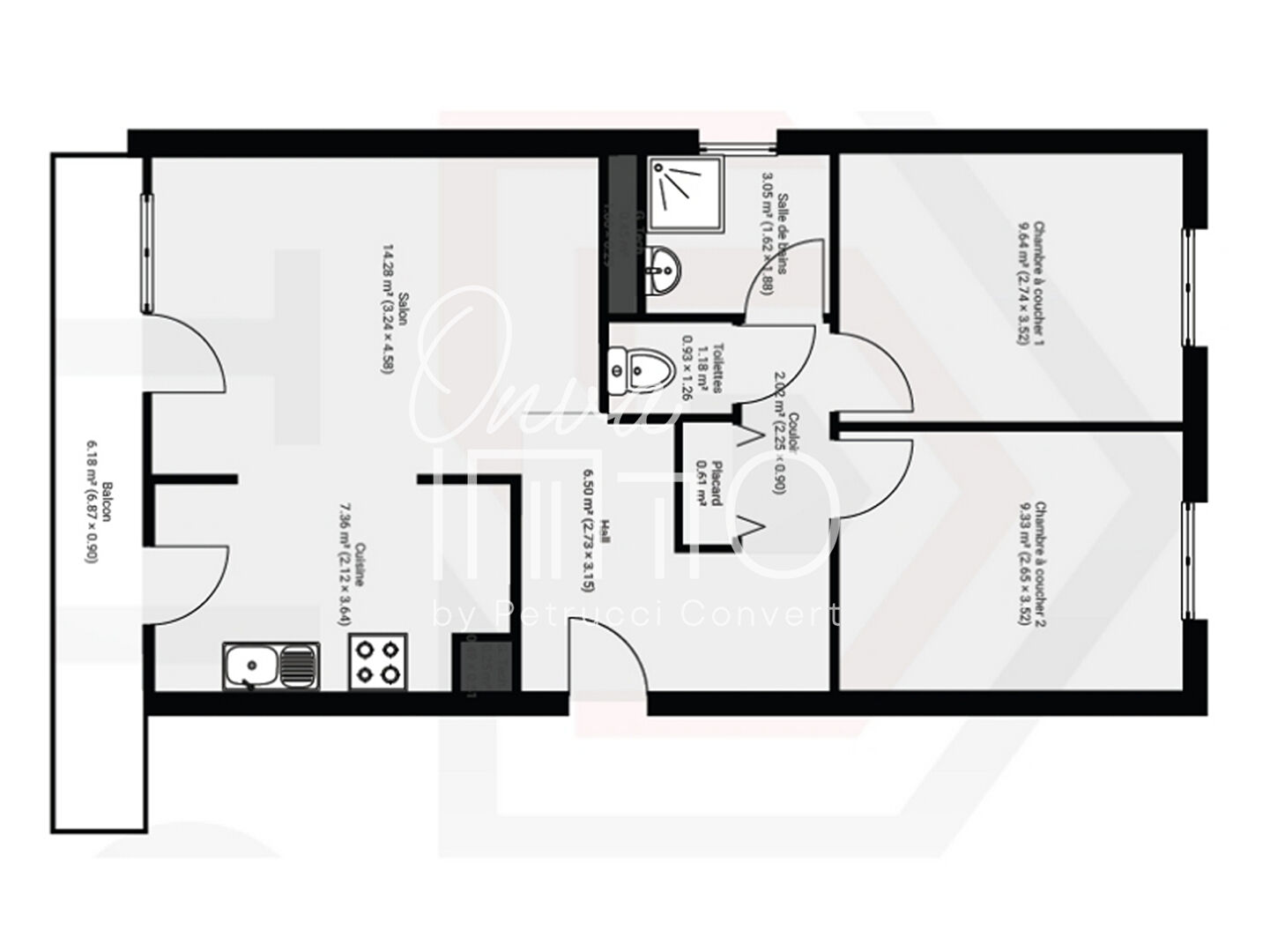Lumineux T3 de 53.74m² avec balcon de 6m², cave et place de stationnement, idéalement situé à 500m du métro Cusset et 700m de la Place Jules Grandclément.