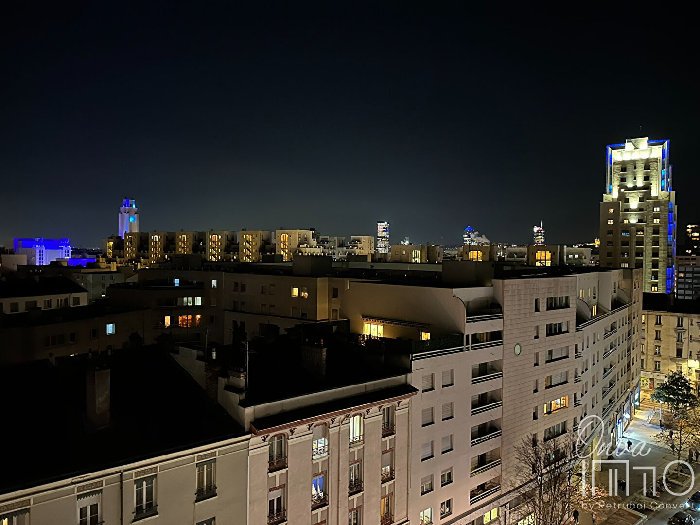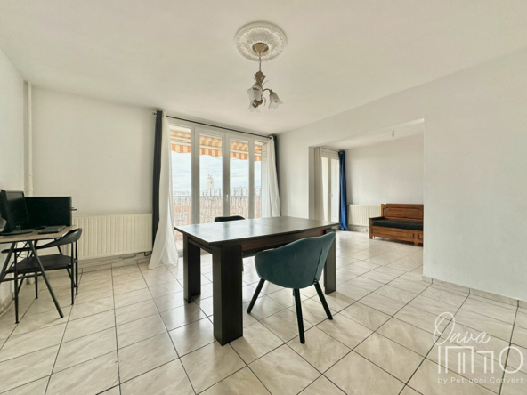 – Séjour double donnant accès à un balcon de 6m² exposée Sud avec vue sur Villeurbanne et Lyon.