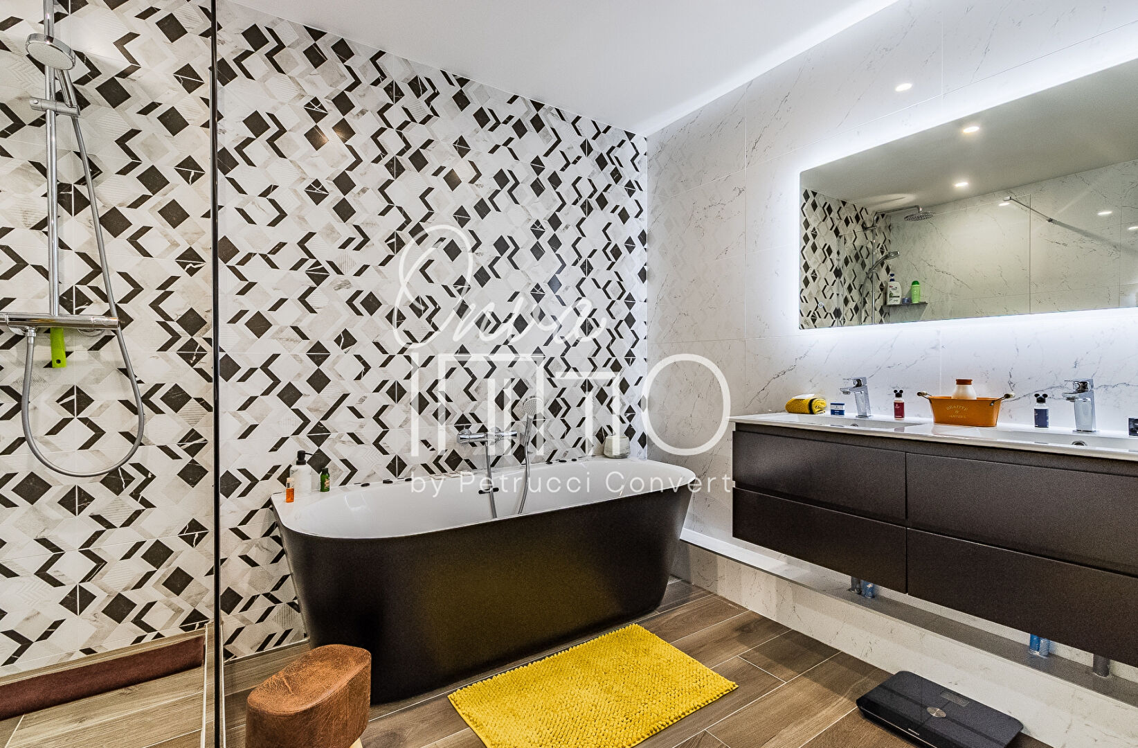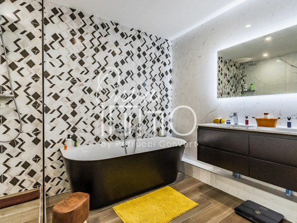 – d’une salle de bains avec douche, baignoire et double vasque (WC séparés).